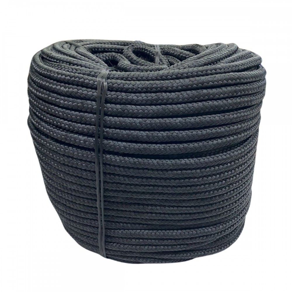 Corda Poliéster Trançada Pet Preta 12 MM Com 100 metros